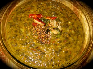 End it with a tempering of bits of garlic fried in 2 teaspoons of oil for a smokey and glazed look. I usually avoid this step but seasoned Sindhi cooks love to see oil floating on their Sai Bhaji.